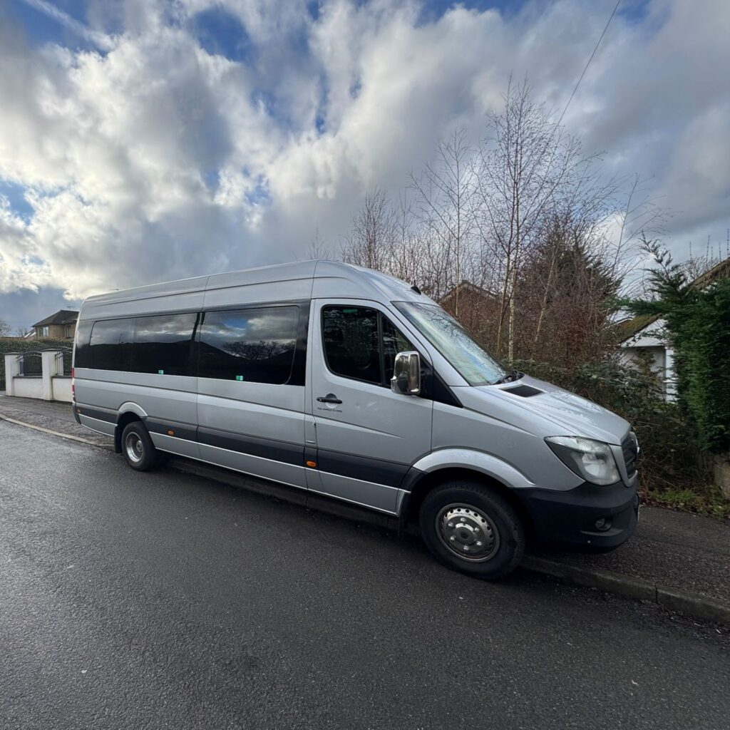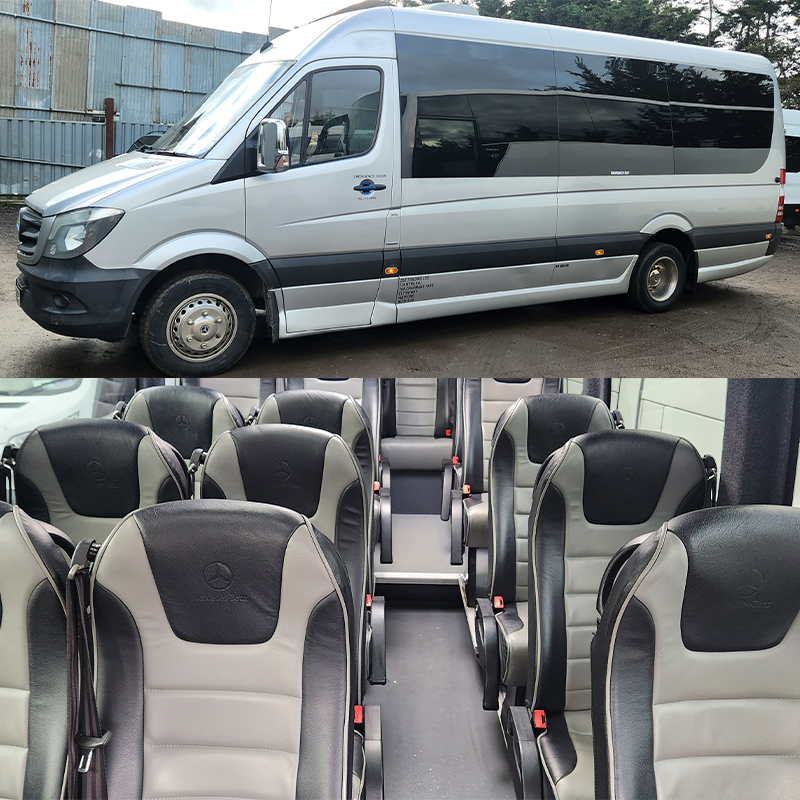 NL17 YCK- SILVER MERCEDES SPRINTER 22 Seater